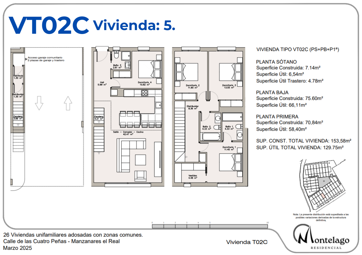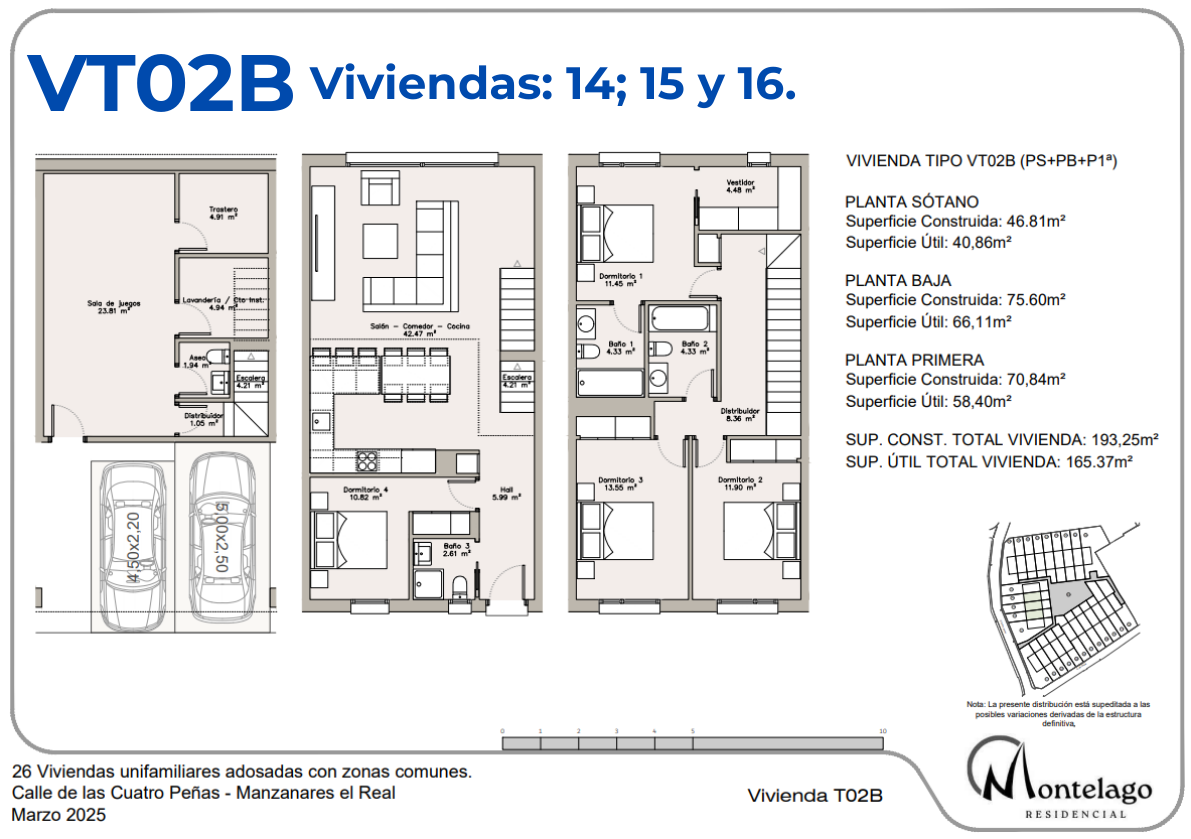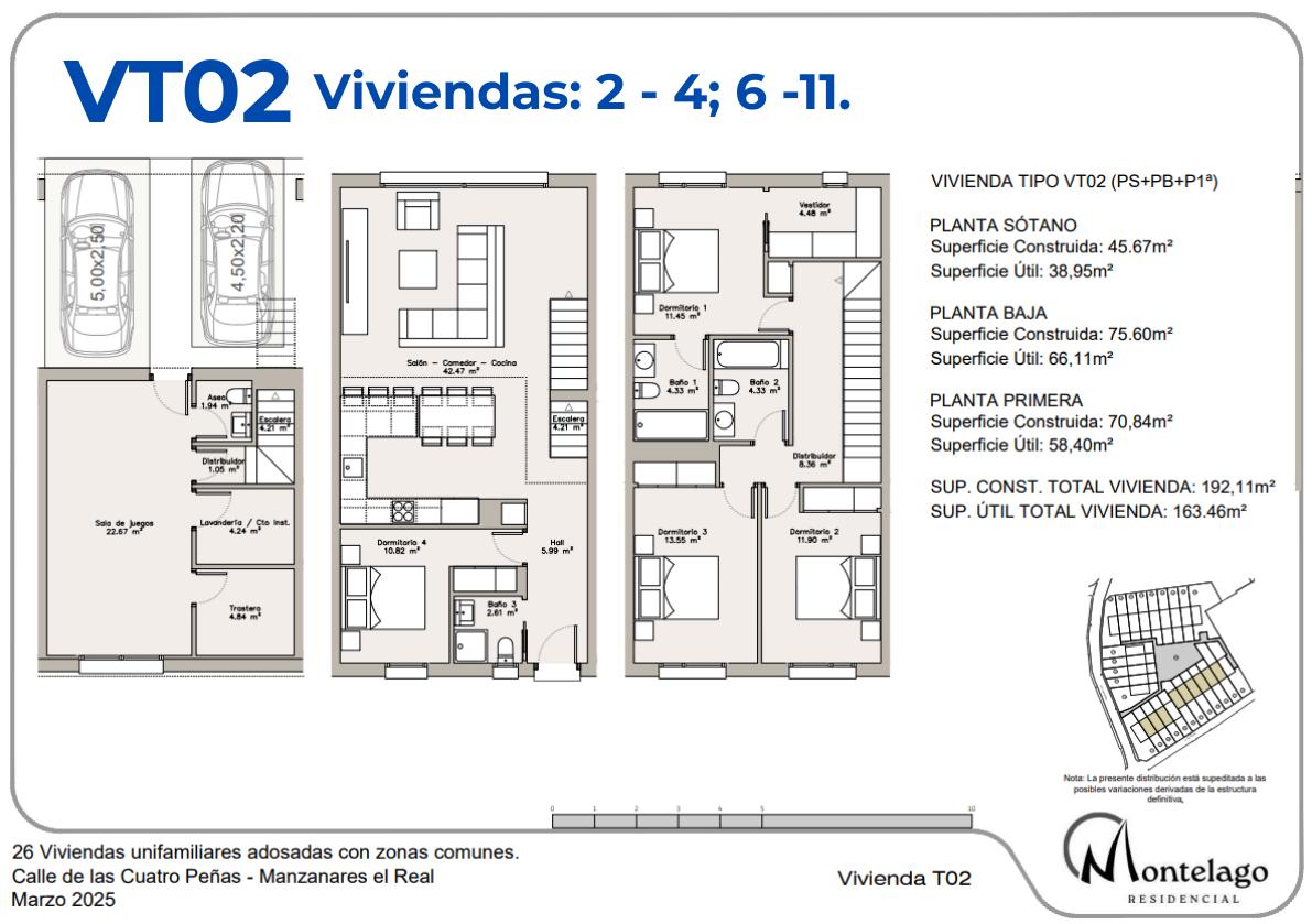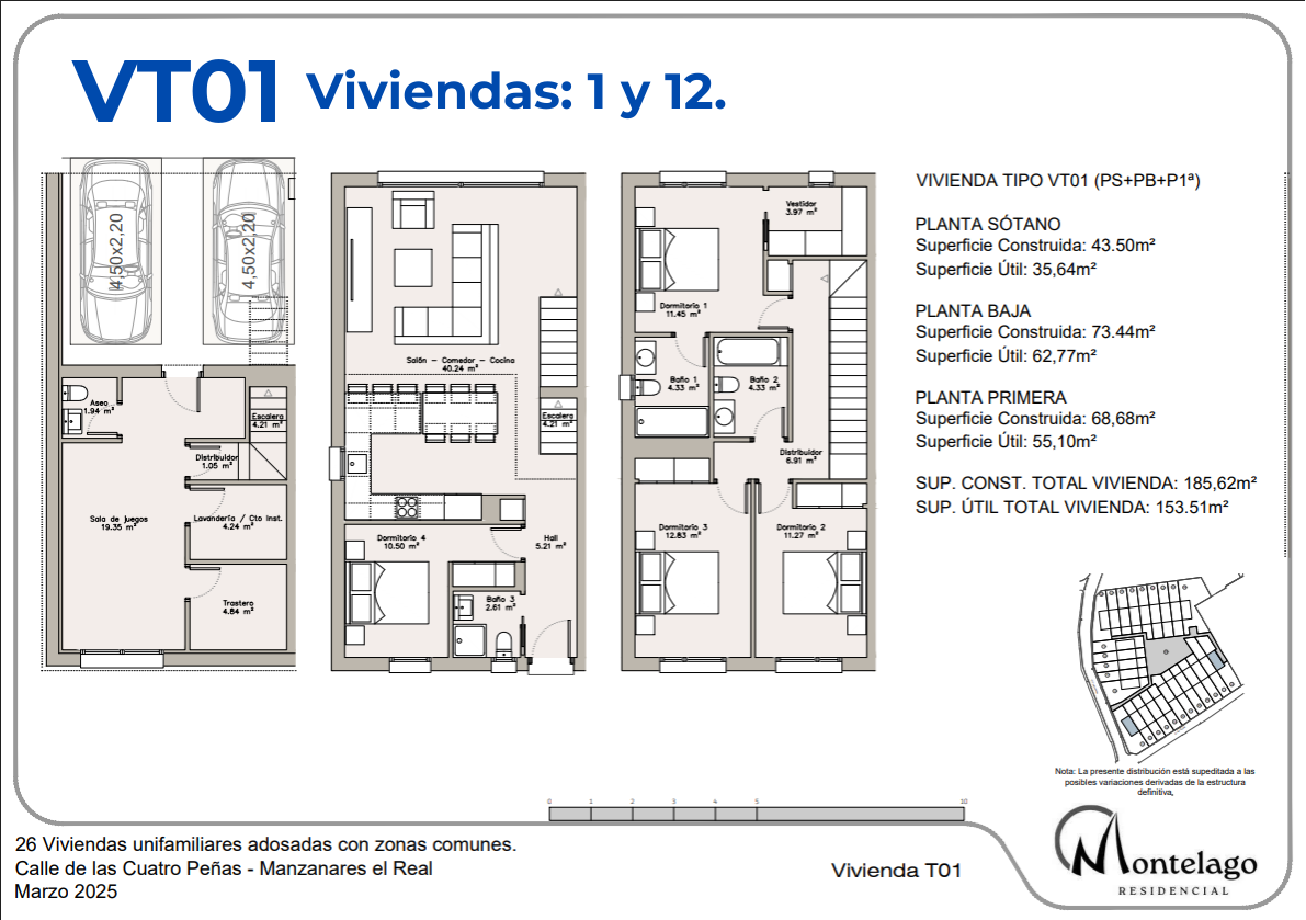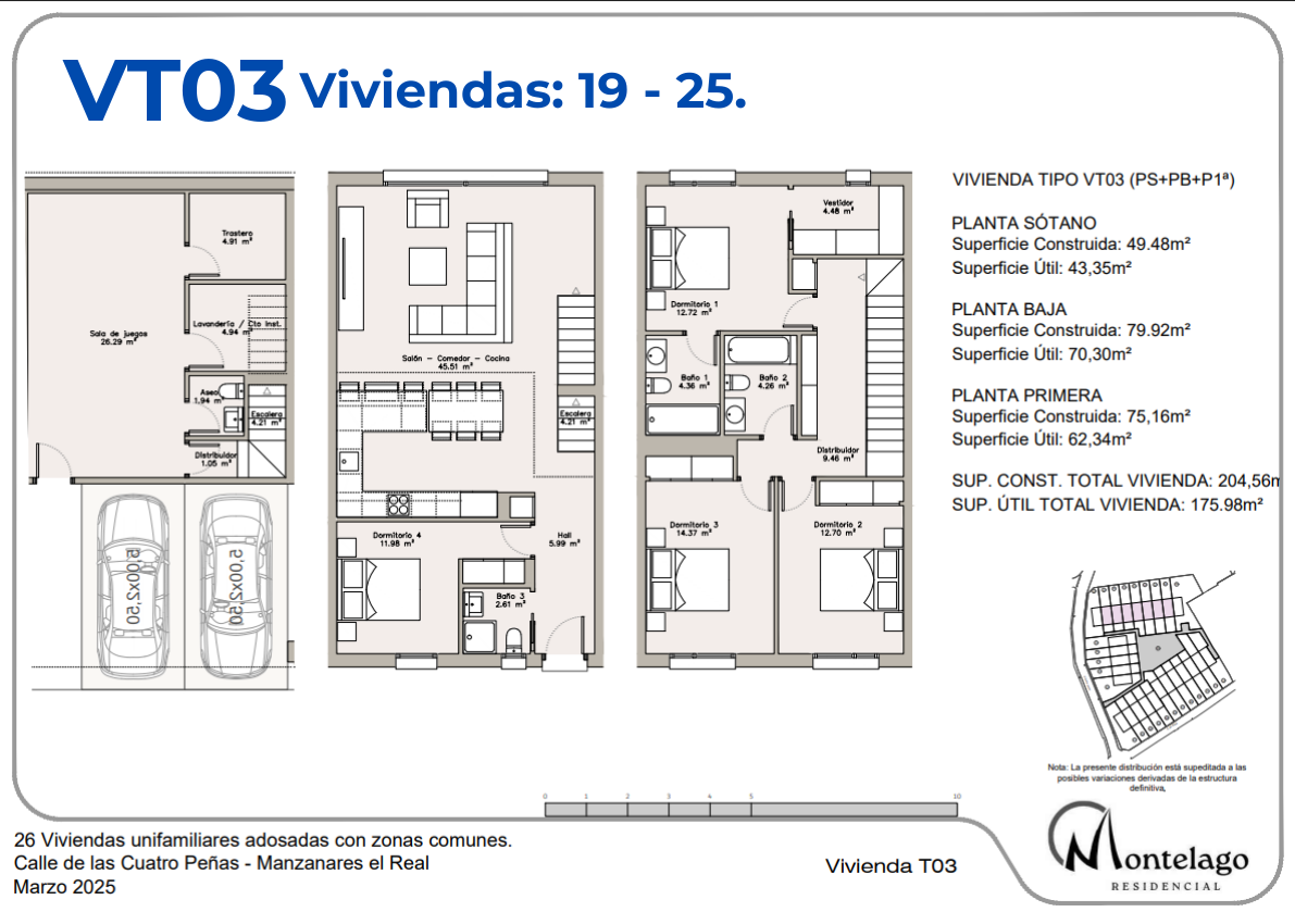 Las viviendas, de 4 dormitorios, cuentan con planta sótano, planta baja y planta primera, además de parcelas privadas, distintas tipologías y una cuidada zona común con piscina.