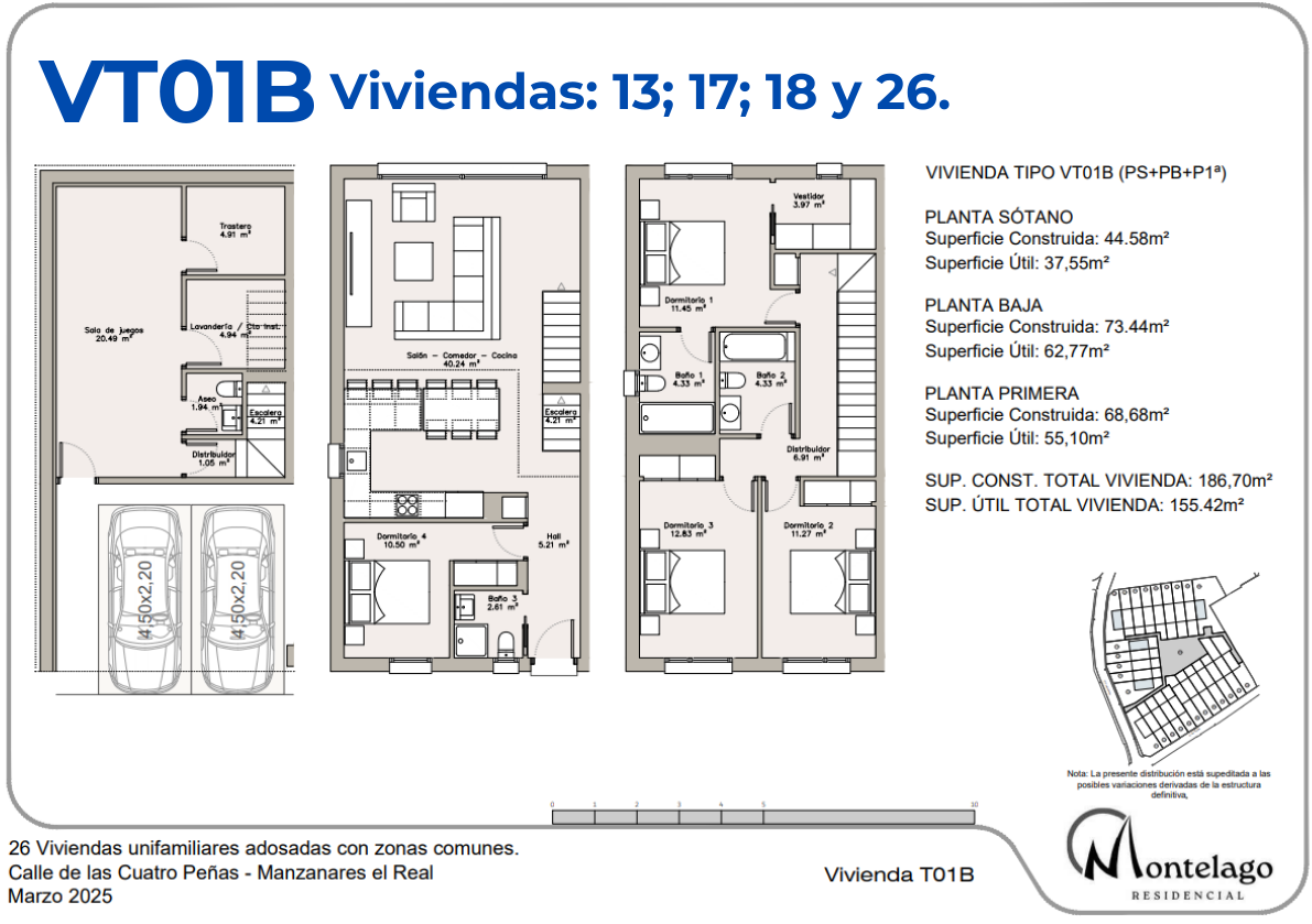 Montelago Residencial es una promoción de 26 viviendas unifamiliares adosadas con zonas comunes en Manzanares el Real, pensada para quienes buscan naturaleza, amplitud y calidad de vida.